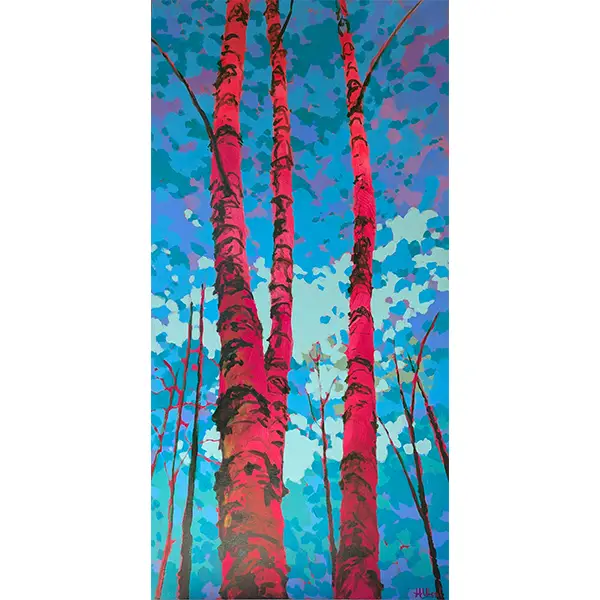 Artist: Helen Utsal, Title: Birch in Blue, Medium: Acrylic, oil stick, oil paint and cold wax, Dimensions: 24" x 48".