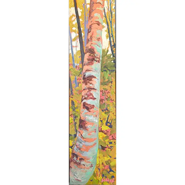 Artist: Helen Utsal, Title: Copper Birch, Medium: Acrylic, oil stick, oil paint and cold wax, Dimensions: 6" x 24".