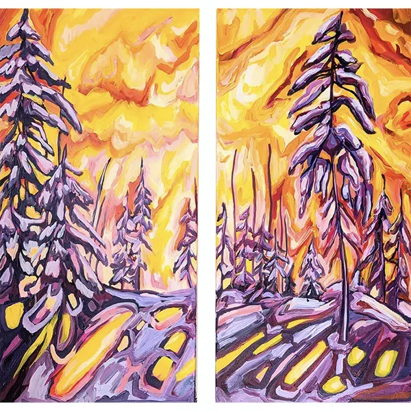 Artist: Montina Hussey, Title: Fire Skies (Diptych), Oil on Canvas, Dimensions: 16” x 28” each