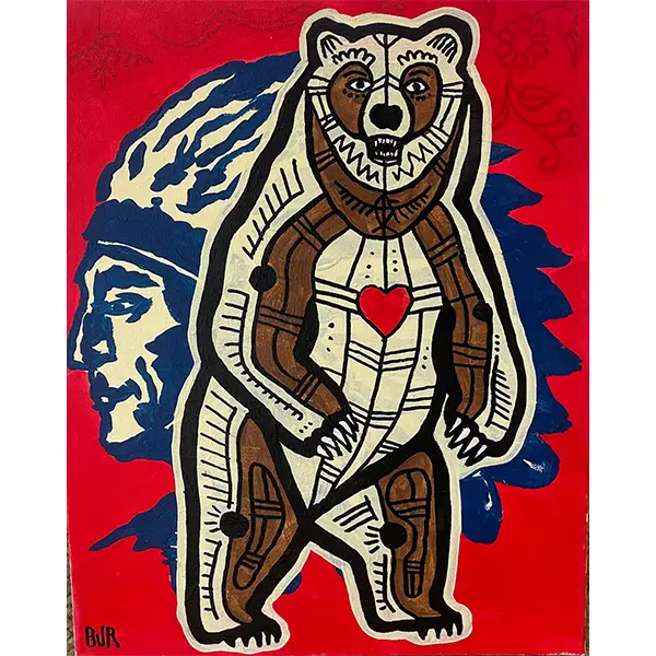Artist: Bradley Reinhardt, Title: niigaanigaabawi, Medium: Acrylic on Canvas, Size: 14” x 17.5”